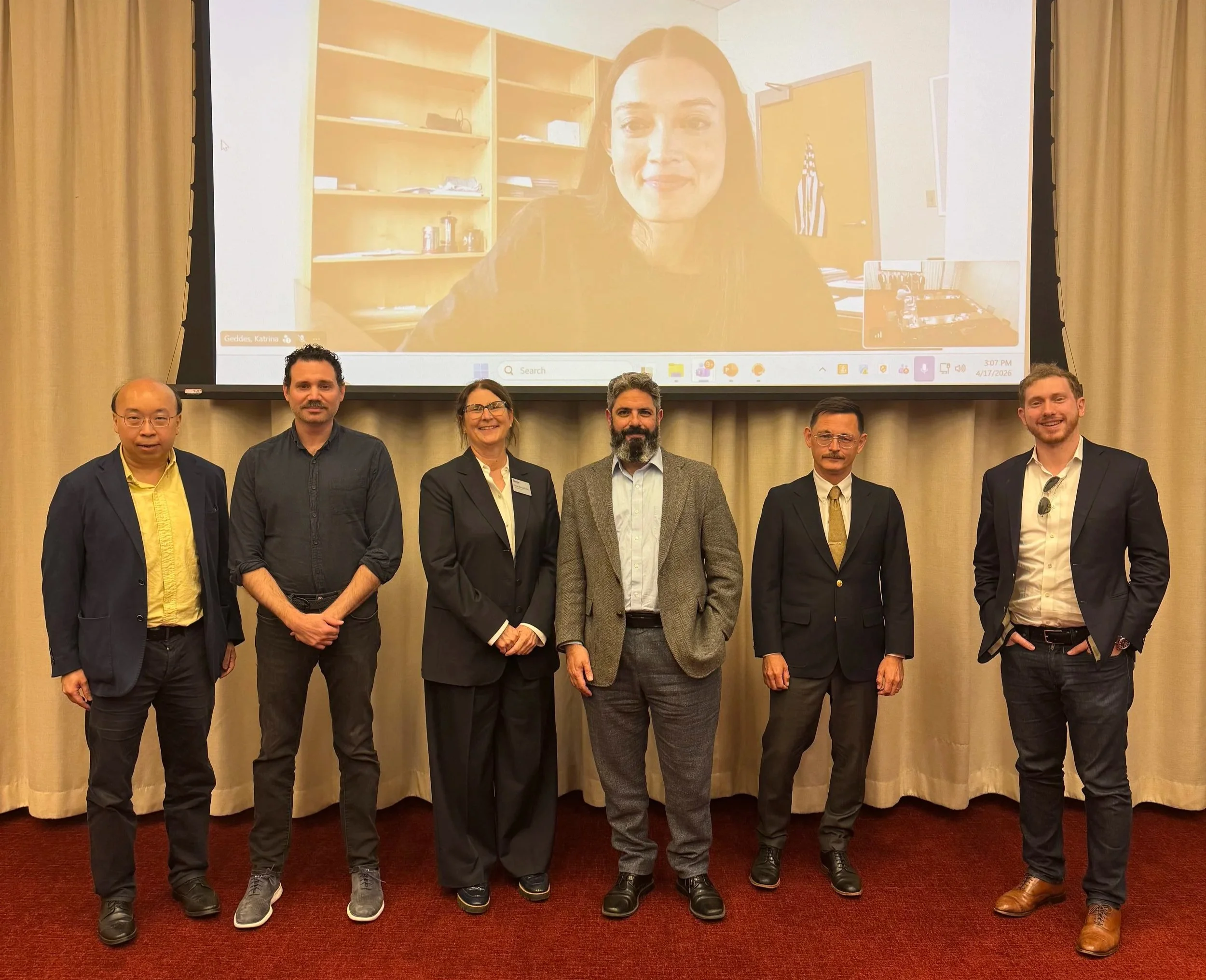 Presenters at IPLaP 2026. From left to right: Prof. Peter Yu, Texas A&M University School of Law; Prof. Dustin Marlan, UNC School of Law; Prof. Sayoko Blodgett-Ford, Drake University School of Law; Prof. Jeremy Sheff, Faculty Director, St. John’s IPLC, St. John’s Law; Prof. Brian Frye, Tulane University Law School; Jonathan Iwry, Wharton Accountable AI Lab. Above: Prof. Katrina Geddes, The Ohio State University Moritz College of Law. Not pictured: Prof. Benjamin Sobel, University of Wisconsin School of Law.